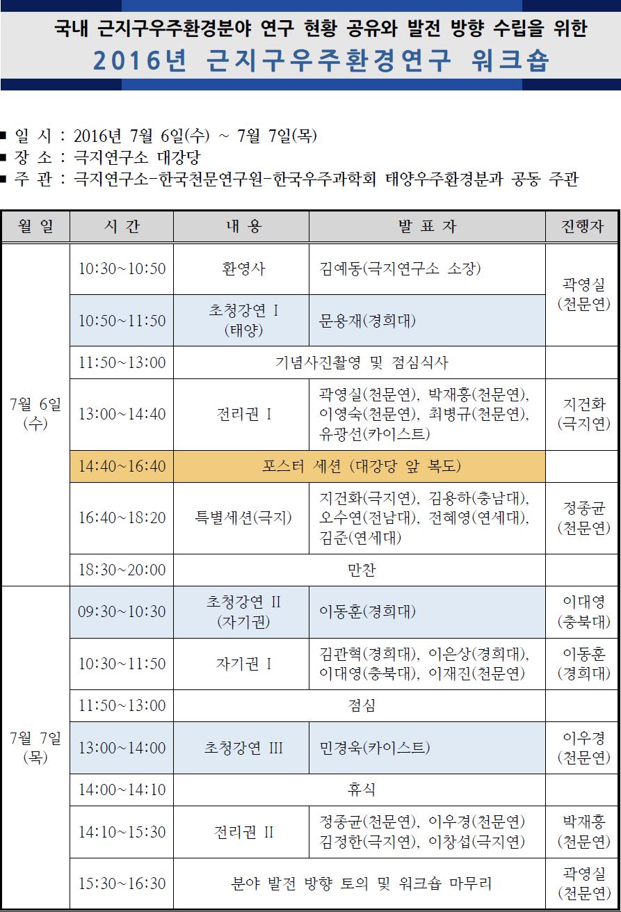 근지구 우주환경 연구 워크숍 2016